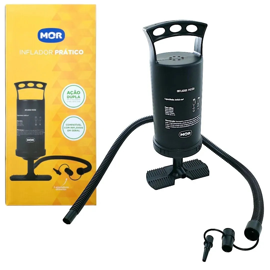 A bomba infladora prática Mor é uma solução eficiente e portátil para encher colchões, boias, piscinas e outros infláveis. Com funcionamento manual e design compacto, é ideal para uso em casa ou em passeios.