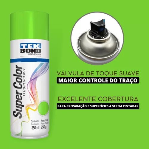 A Tinta Spray Tekbond Verde Fluorescente 350ml é ideal para pintura de superfícies como metais, madeiras, cerâmicas, gesso e plásticos devidamente preparados. Proporciona excelente cobertura, secagem rápida e acabamento fluorescente, sendo perfeita para projetos de decoração, sinalização e projetos criativos.